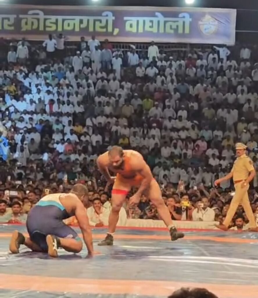 माती विभागातील अंतिम लढतीत सोलापूर जिल्ह्याच्या महेंद्र गायकवाडने हिंगोलीच्या सिकंदर शेखवर ३-० अशी मात करत अंतिम फेरी गाठली. सुरुवातीपासूनच अटीतटीची, तुल्यबळ आणि काळजाचा ठोका चुकवणारी ही लढत ठरली. बाहुबली अशी ओळख असलेल्या महेंद्रने आक्रमक खेळाची सुरुवात करत प्रतिस्पर्ध्यावर दबाव निर्माण केला. अनेक मैदानं गाजवलेल्या या दोन्ही दावेदारांमधील सामना कुस्तीशौकिनांसाठी उत्कंठा शिगेला पोहोचवणारा ठरला.